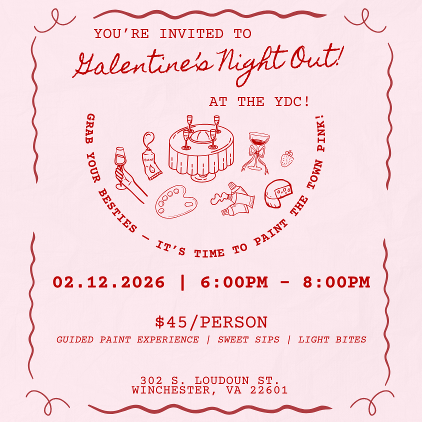 Join us for a fun and fabulous Galentine’s Night Out at The YDC! Enjoy a guided painting experience, light bites, and a glass of something sweet as you celebrate friendship and creativity in the heart of downtown Winchester. Whether you come solo or with your favorite gals, you’ll leave with your own masterpiece and memories […]